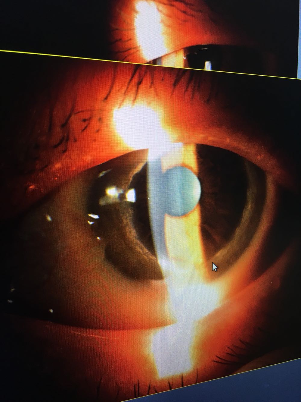 患者老年女性,年龄63岁,自诉双眼黑眼球上有膜状物十年。一年前曾因双眼红疼在外院进行治疗,具体不详。既往无高血压糖尿病
