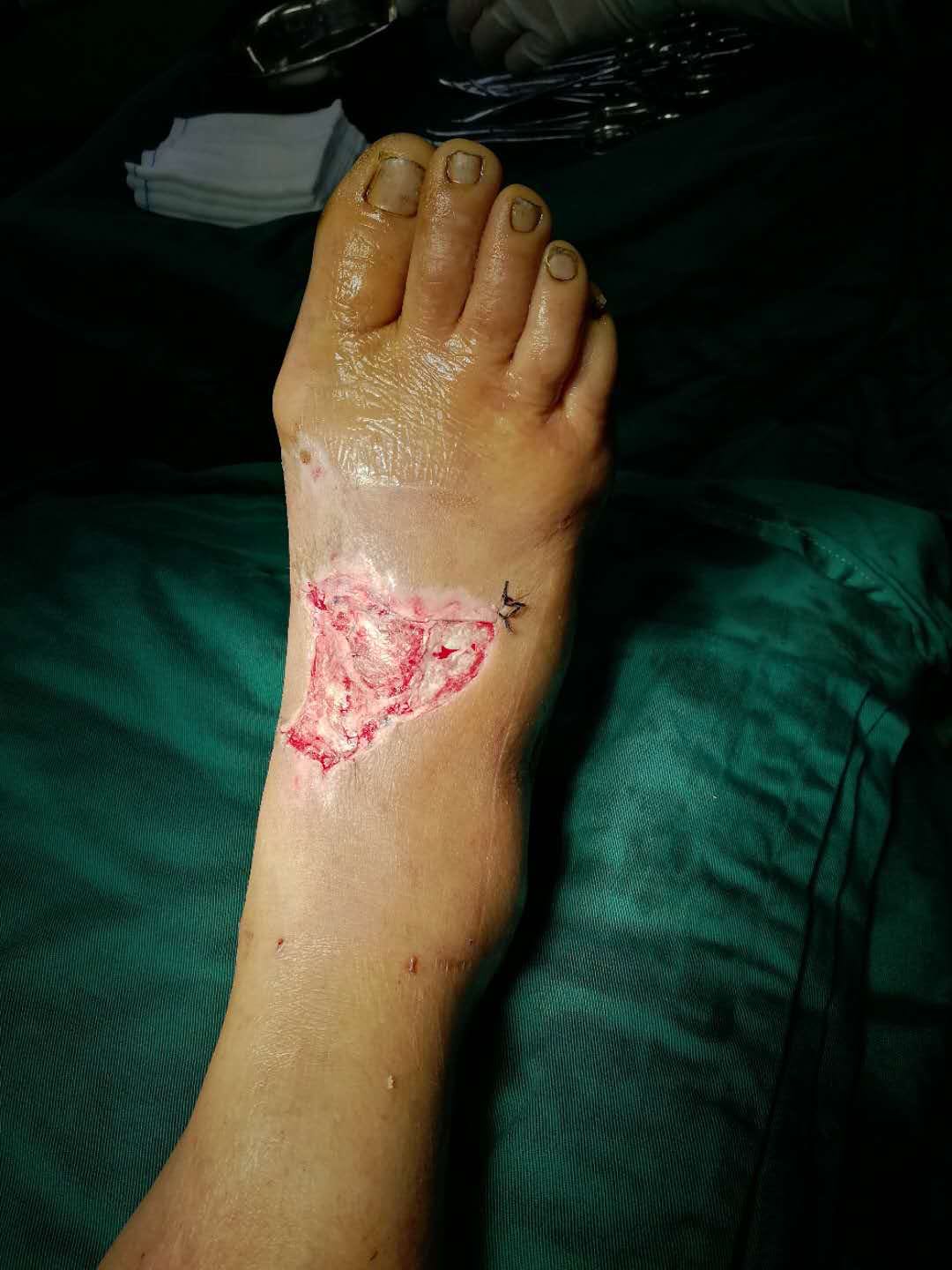 术后9天,拆除vsd,创面稳定,肉芽生长良好。二期行取皮植皮术。