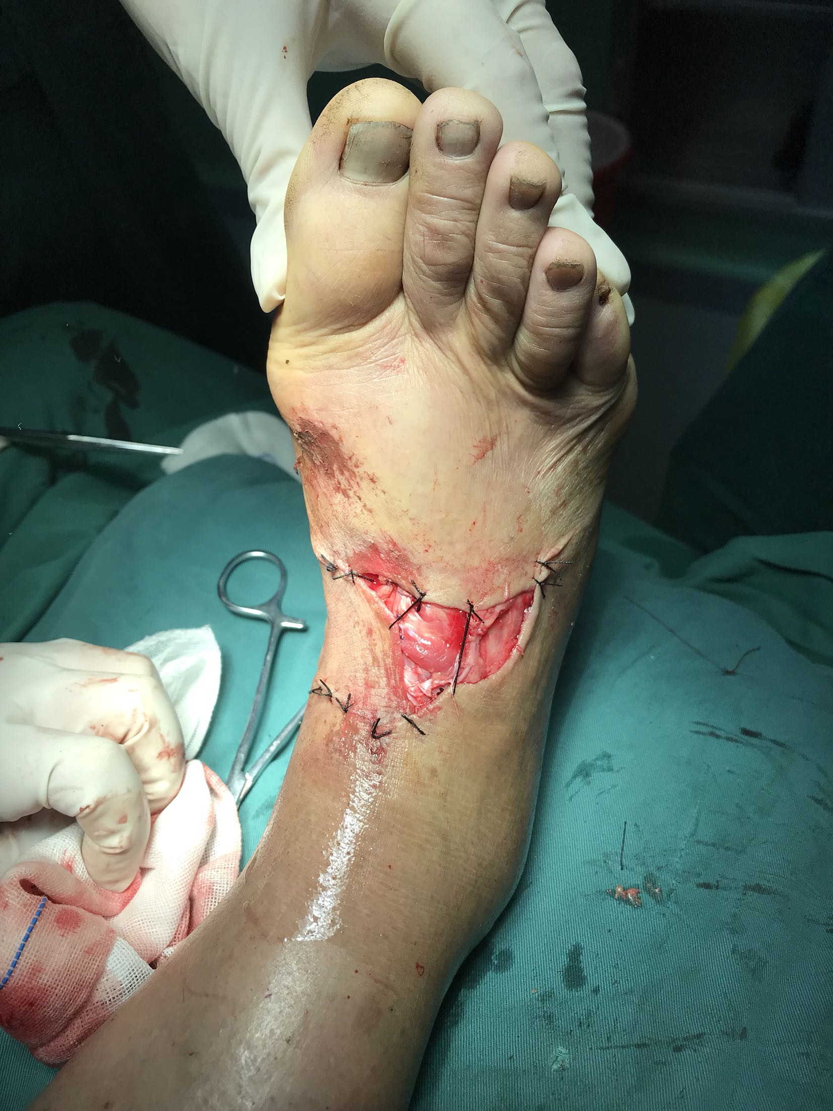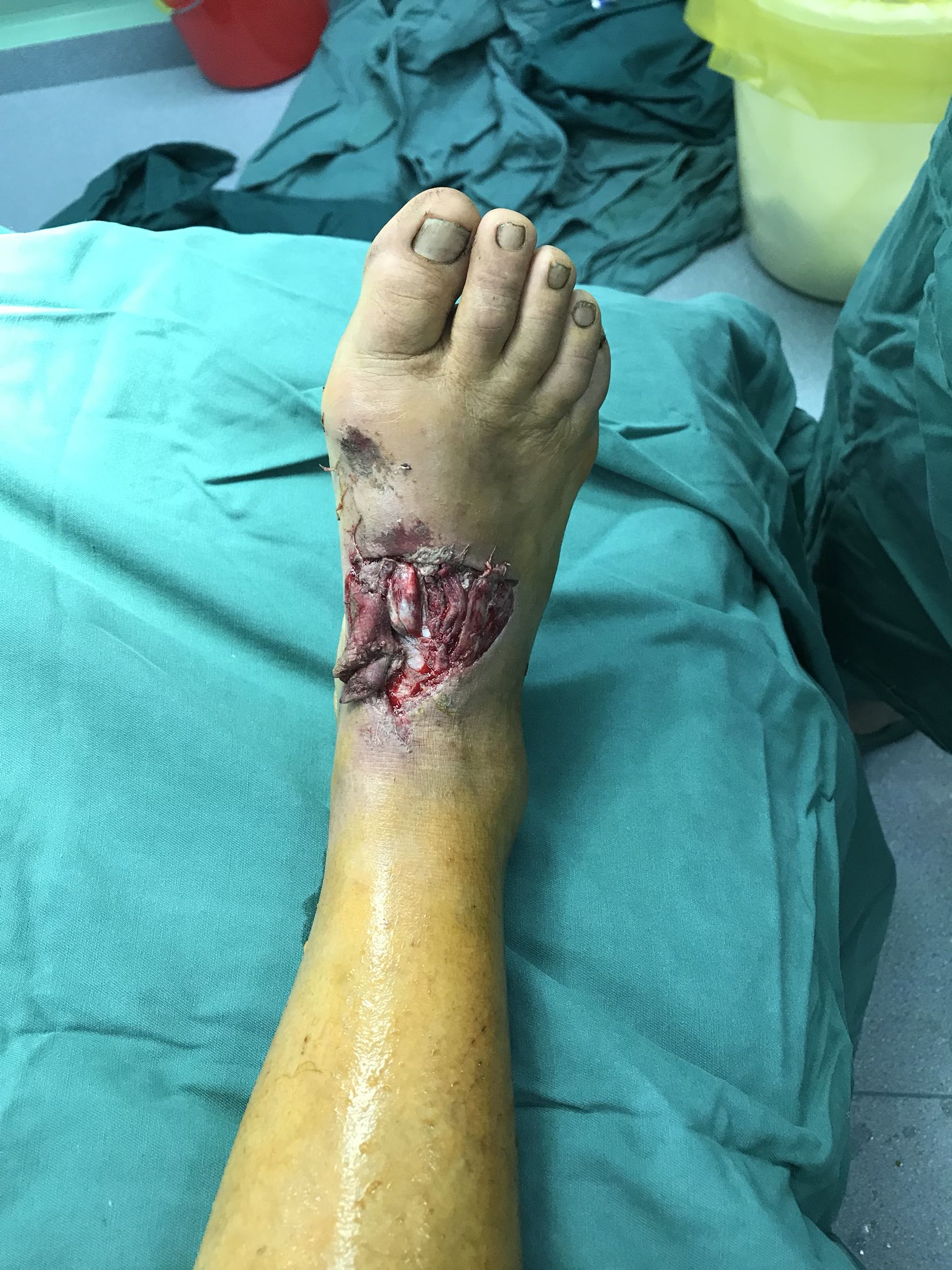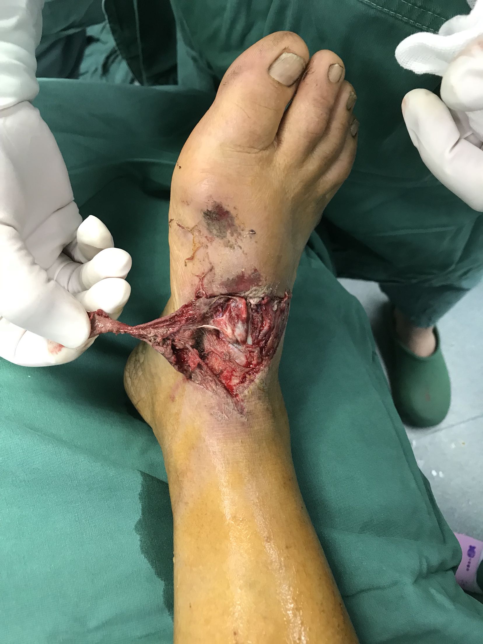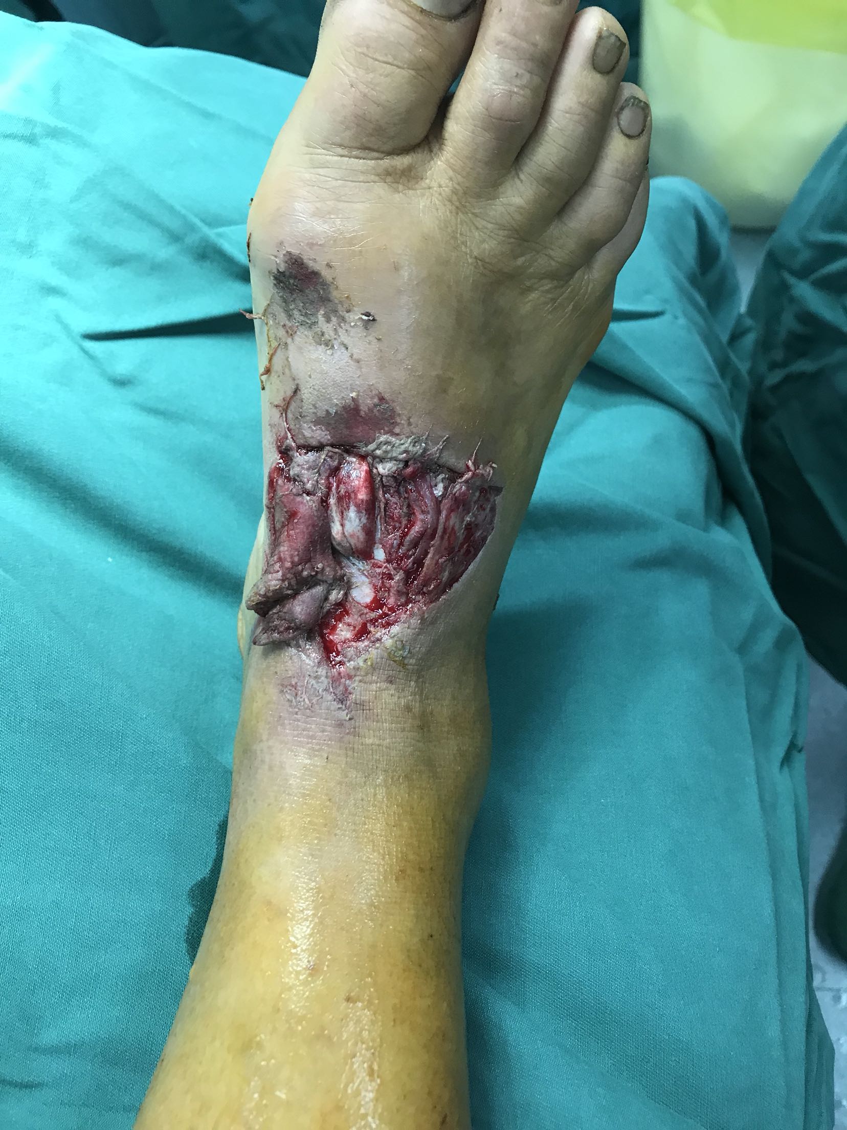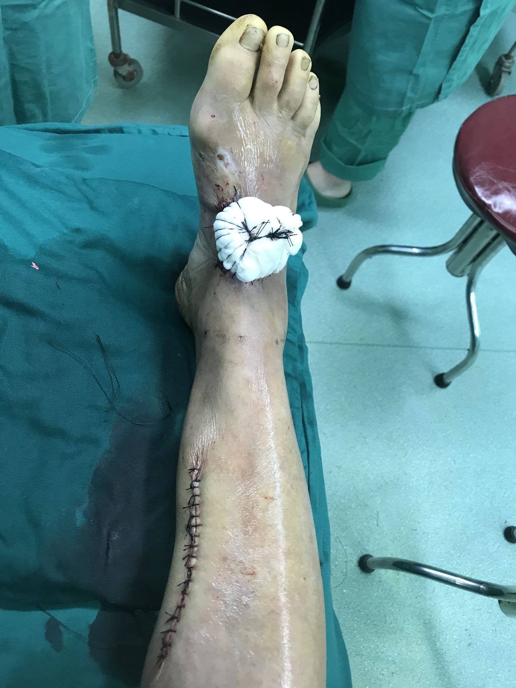 小腿内侧皮瓣修复前足毁损伤
