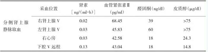 患者男性,23岁,主因“发作性头晕,头痛3年余”入院。患者入院前3年因发热就诊于当地医院,测血压180/100mmhg,此后无明显诱因出现头晕,头痛,偶伴恶心,呕吐胃内容物,间断服用降压药硝苯地平控释片无明显好转。2个月前就诊当地医院,测血压230/130mmhg,血钾2.94mmol/L,卧位血浆肾素活性(PRA)0.41ng/(ml·h),醛固酮(ALD)20.8ng/dl,头颅磁共振提示“多发性腔隙性脑梗死”,诊断为“原发性醛固酮增多症可能性大”,给予“坎地沙坦,螺内酯,比索洛尔,硝苯地平控释片”等治疗,血压维持在170/130mmhg左右。一月前外院复诊,血压180/120mmg,血钾3.19mmol/L,尿钾48.14mmol/24h。家族史:奶奶40岁脑出血去世,大伯26岁脑出血去世,父亲35岁患高血压,姑姑38岁患高血压。