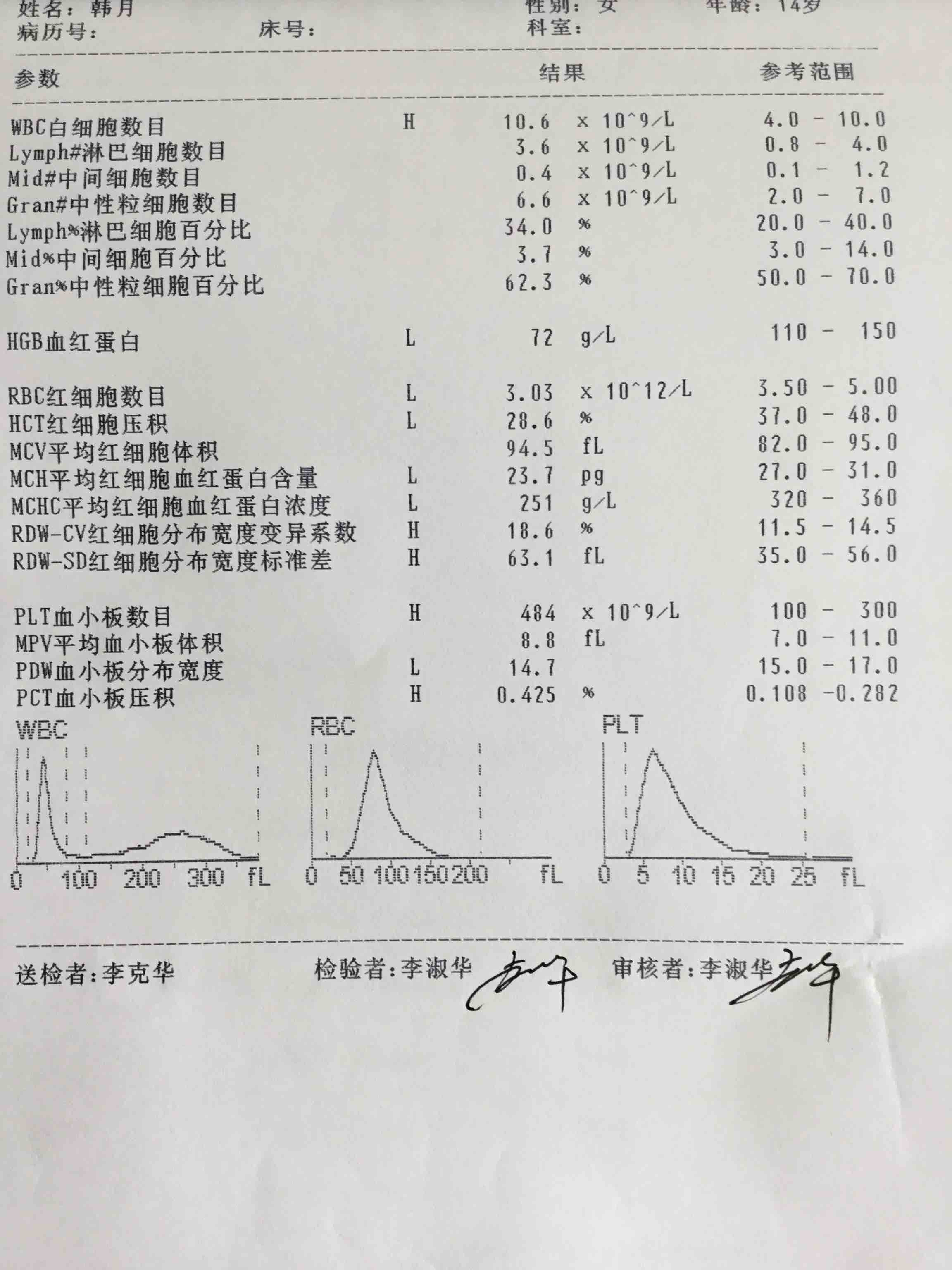 主诉,阴道流血20天,伴头晕,乏力5天。现病史,患者2016年3月月经初次来潮,3-4/28-30天,量中,无痛经。20天前停经50天后出现阴道流血,量时多时少,无腹痛,在外院给予止血药物治疗,未见好转,近5天阴道流血多于月经量,伴头晕,乏力,食欲差。今就诊我院,门诊以功能失调性子宫出血收住院。既往体健,无肝炎,结核及肾炎病史。