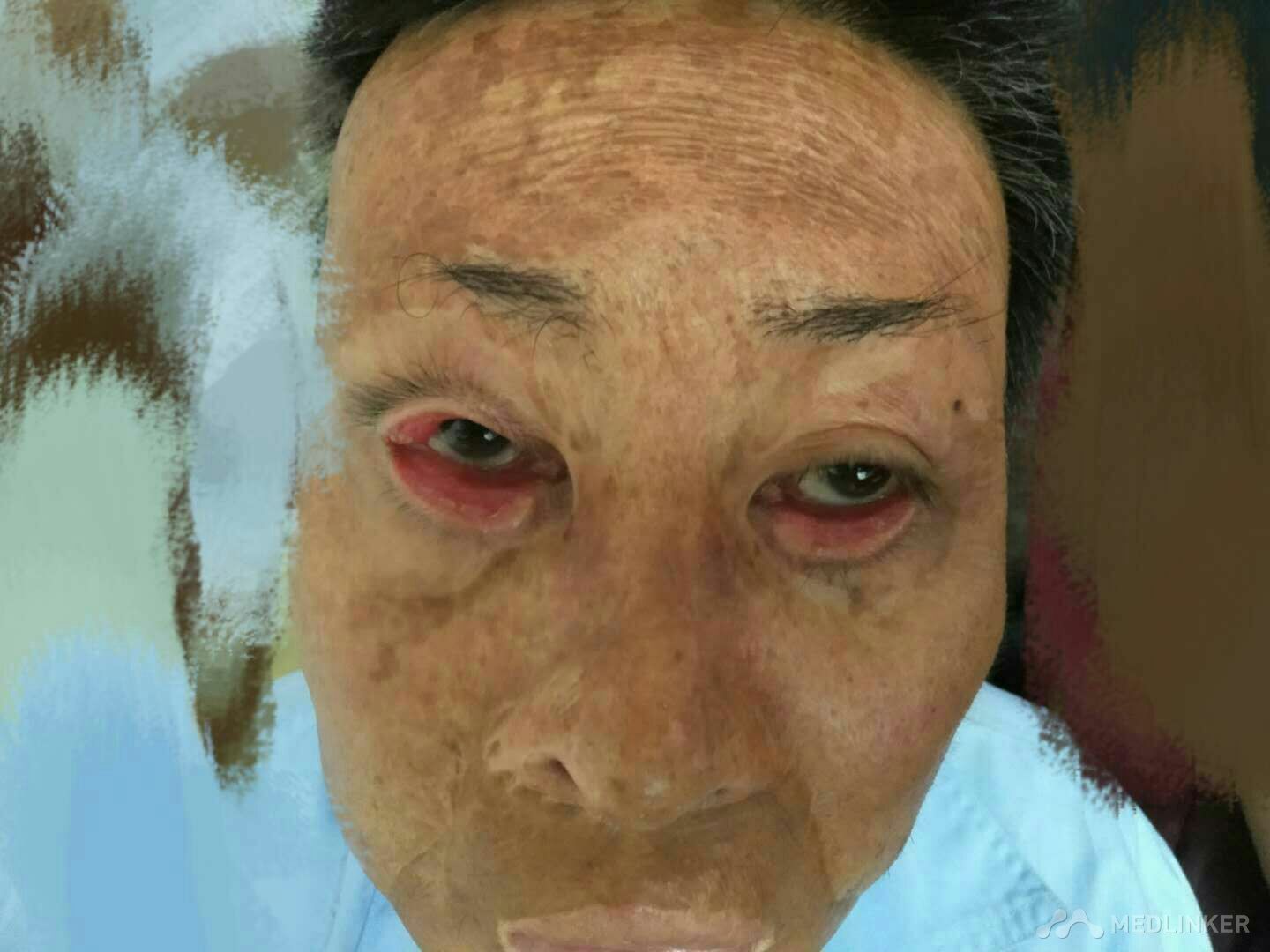 双眼流泪3年余 患者男性60岁农民。 患者于5年前因烧伤眼流泪。为进一步诊治,遂来我院,眼科门诊诊断为双眼瘢痕性睑外翻。 既往体健,无不良嗜好。