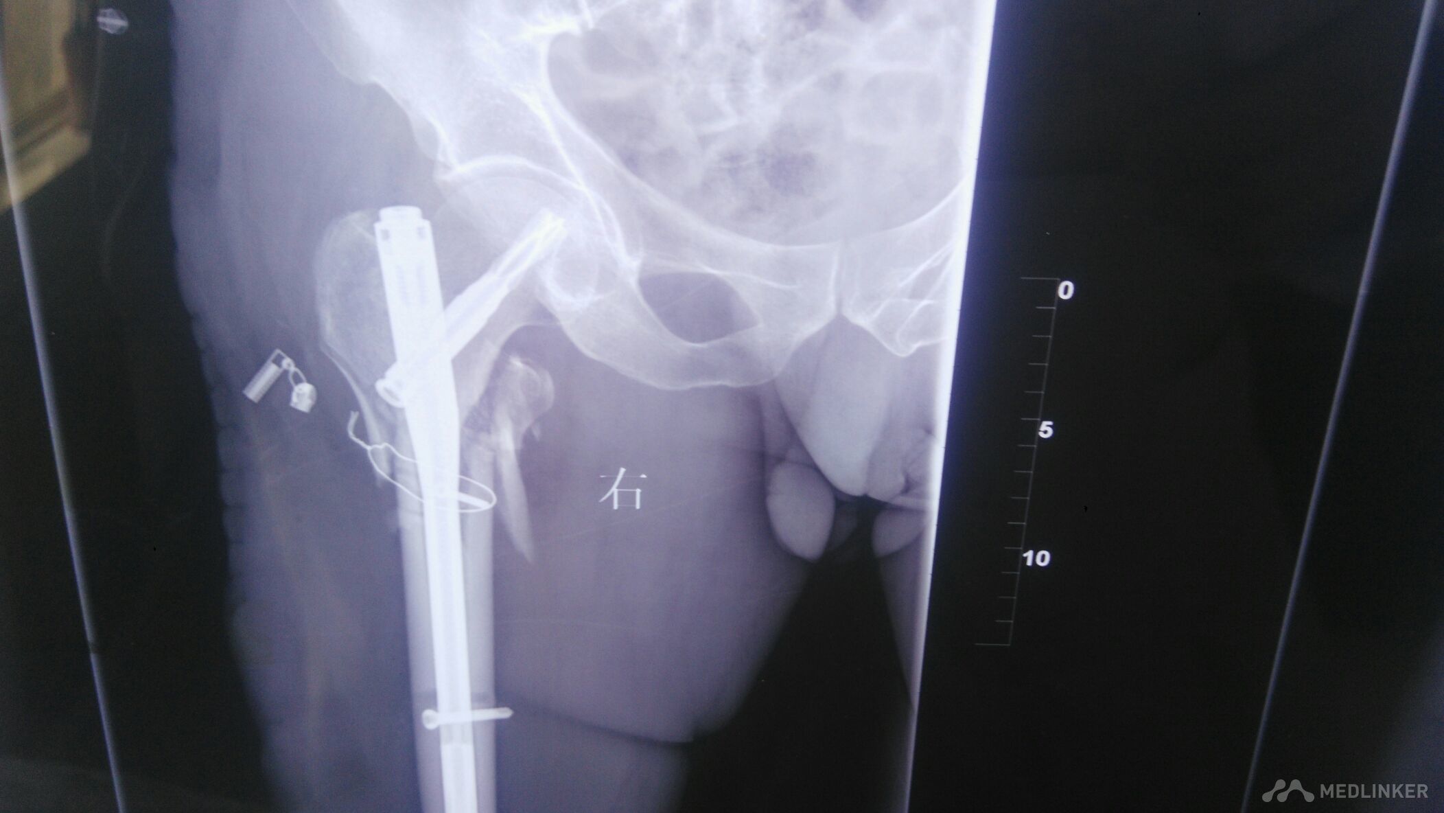 沉痛的教训,下面的锁定,没有锁住,只能相当于阻挡钉。逼住主钉。髋部力线改变。防旋能力差。