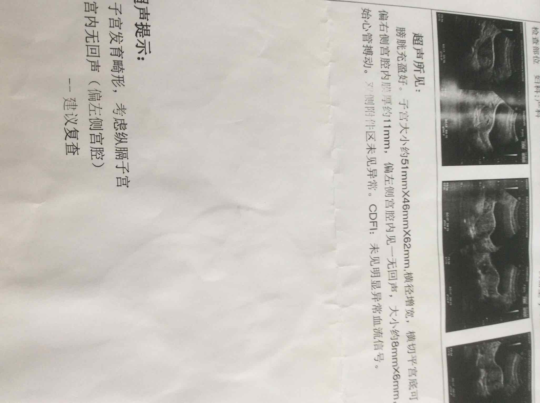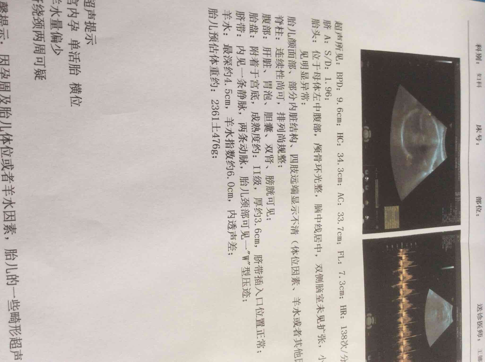 体格检查:生命体征正常,心肺未闻及异常,腹部膨隆,肝脾未触及。产科检查:宫高34厘米,腹围102厘米,横位,肩先露。胎心146次/分。阴道检查:外阴发育正常;阴道:完全纵隔,畅;宫颈:双宫口,左侧宫颈质软,宫颈管未消退,宫口居中,容一指松,右侧宫口紧闭。