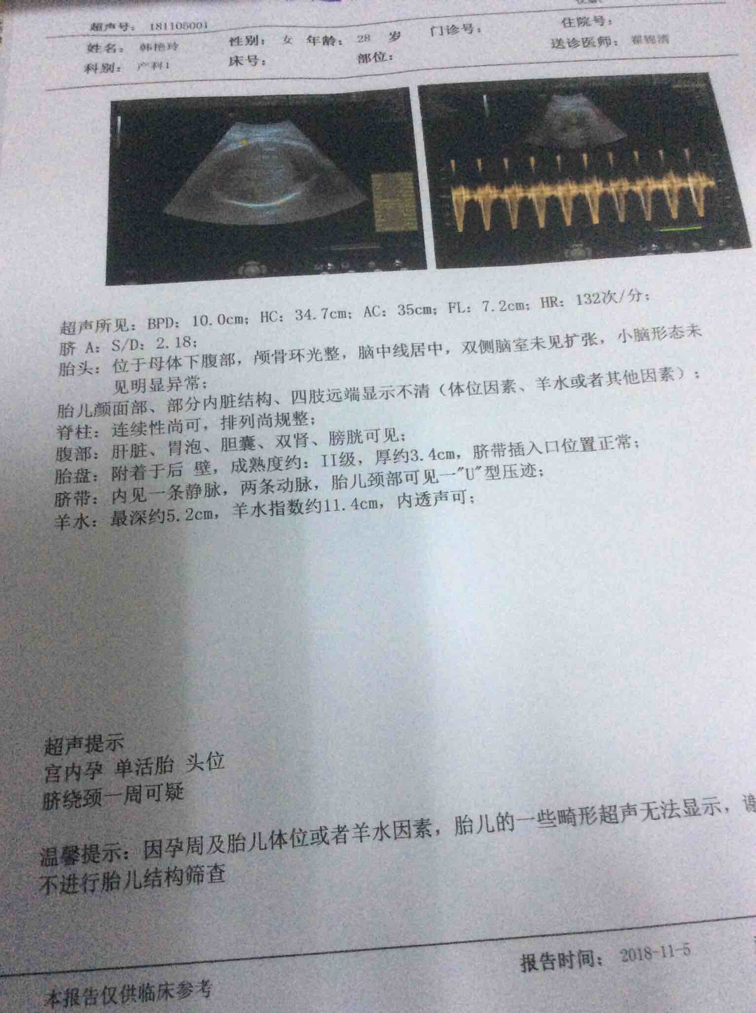 主诉:停经9月余,阵发性腹痛2小时。现病史:既往月经规律,末次月经:2018-2-4 预产期:2018-11-11 停经50天出现早孕反应,孕3月早孕反应消失,孕12周NT未发现异常,孕18周唐筛结果提示低风险,孕5月自觉胎动至今。孕期无有害物质接触史,无头晕眼花等症,双下肢轻度浮肿,自孕以来无阴道流血流水史。