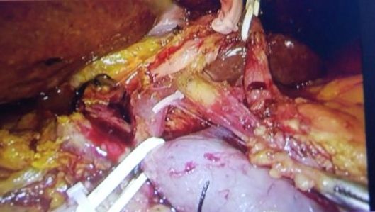 诊断:1.胃癌,性质待病理;病理活检,胃镜病理示:(胃体)粘膜轻度慢性炎,中度萎缩,部分腺体高度异型增生,局部呈腺癌改变。处理:完善辅检后行腹腔镜胃癌根治术,术中注意肝十二指韧带及脾门区血管解剖,这样才不会导致术中操作不当的出血。遵循正确的手术方法。遵循术中清扫步骤,首先要暴露脾门区,其次裸化胃网膜左血管和裸化脾动脉,最后裸化脾叶动脉。处理好术后的并发症。肝十二肠韧带及脾门淋巴结清扫最容易发生的并发症是引起血管的损伤,脾被膜的损伤,引起出血,术中控制不了出血的话只能进行脾切除,本例手术顺利。术后胃肠外营养,抗感染,补液。术后7天治愈出院。
