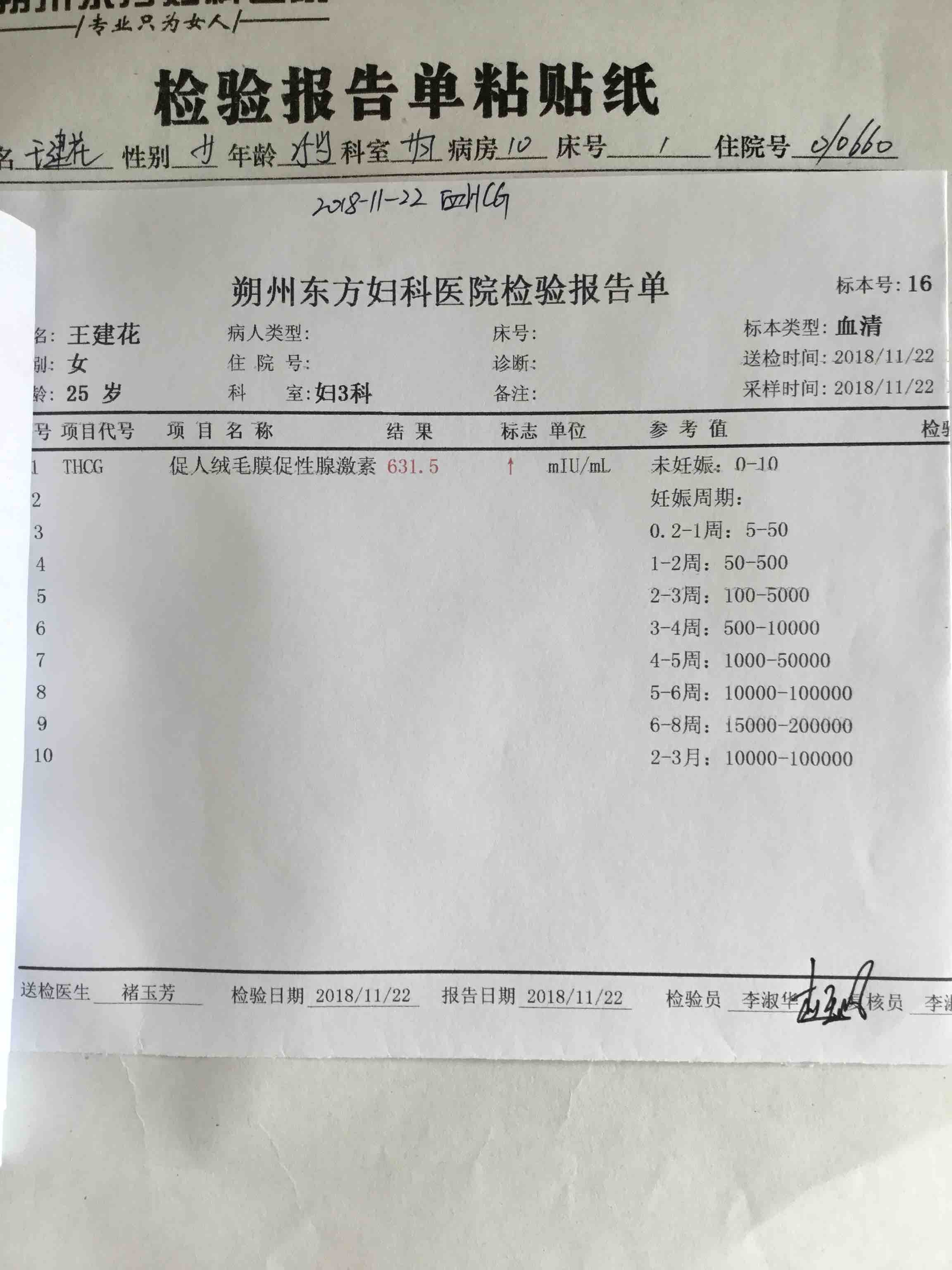 患者术后恢复良好,第五天出院,血hcg50mlU/L。病检报告,输卵管黏膜水肿,可见坏死退变绒毛组织。