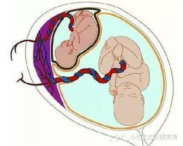 双胎输血综合征(TTTs)是指两个胎儿循环之间通过胎盘的血管吻合进行血液输注,导致双胎均出现明显的血流动力学异常,从而引起的一系列病理生理学改变及临床表现。1TTTSの特点①单个胎盘;②两胎儿间伴有纤细分隔隔膜;③两胎儿性别相同;④受血儿羊膜腔内羊水过多,最大羊水池深度>8cm;供血儿羊膜腔内羊水过少,最大羊水池深度<2cm;严重的羊水过少可表现为“贴附儿”;⑤受血儿膀胱增大,供血儿膀胱过小或不充盈;⑥两胎儿生长不对称,体重估测差异>20%;⑦受血儿脐带直径大于供血儿脐带直径; ⑧CDFI:脐动脉舒张末期血流速度减低、消失甚至出现反向血流;静脉导管2a波反向;脐静脉出现搏动血流;⑨胎儿水肿,表现为皮肤水肿、心包积液、胸腔积液及腹腔积液;⑩胎儿超声心动图,受血儿表现不同程度的心力衰竭、心室肥厚、心脏增大。