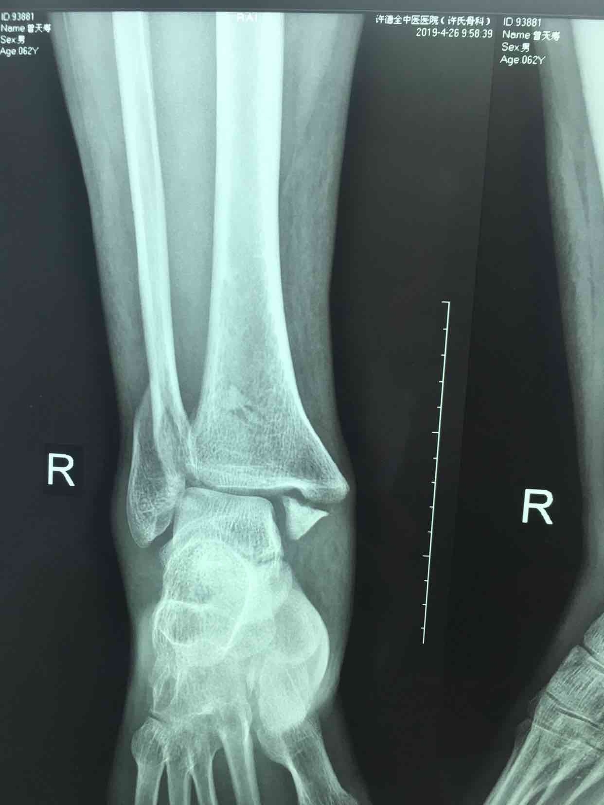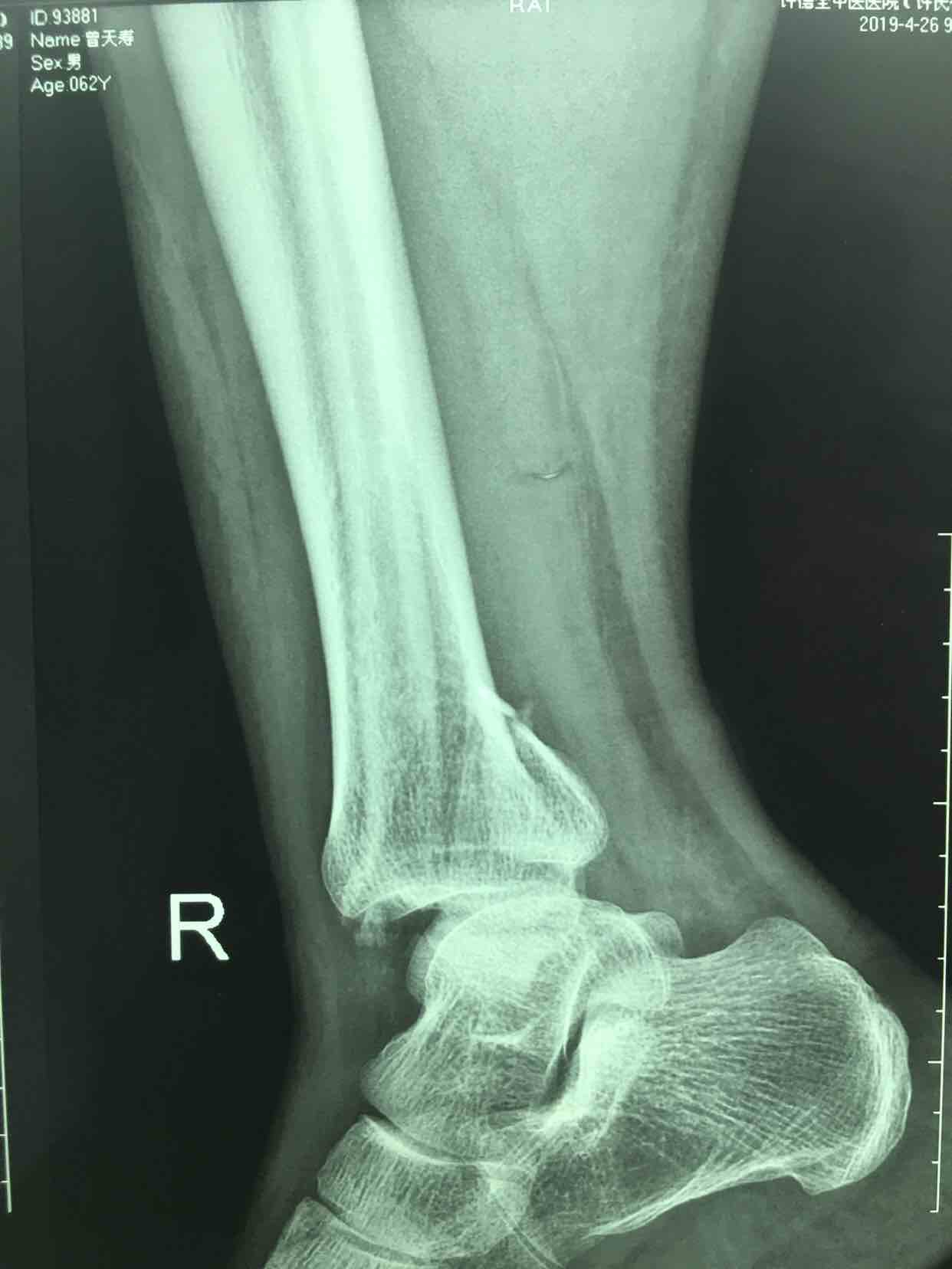 生命体征平稳,心肺复未见异常。右踝部肿胀,局部皮色发红,皮温高,畸形,压痛及纵叩痛阳性,可及骨擦音或骨擦感,踝关节活动受限,末梢血运感觉正常。