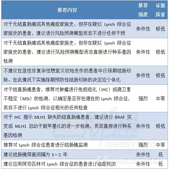 2015年7月,《Gastroenterology》杂志在线发表了美国胃肠病学会(AGA)林奇(Lynch)综合征诊断和管理指南。该指南建议所有的结直肠癌患者应该接受肿瘤检测以观察他们是否携带林奇综合征。AGA还建议在林奇综合征患者中每1~2年开展1次结直肠镜检查。