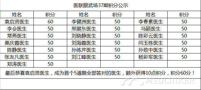 您答对了吗?每周积分榜第一名的医生将会获得50元的现金奖励,第二名30元现金奖励,第三名到第五名20元现金奖励。