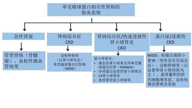 虽然有些病人并不发展为肾病患者,有肾脏受累的单克隆免疫球蛋白病的患者,临床表现各异。(图 2)